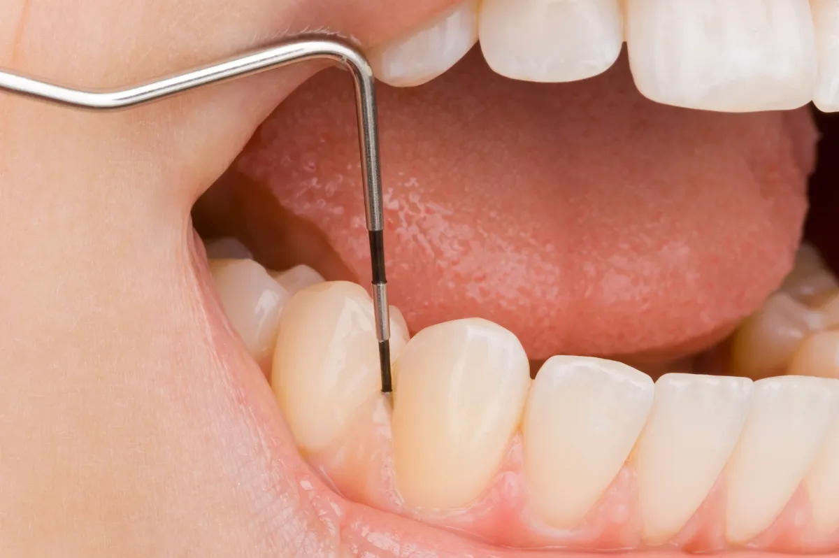 歯茎の溝の深さや出血の有無を測定し、歯周病の進行度を確認します。痛みはほとんどなく、短時間で行える検査です。